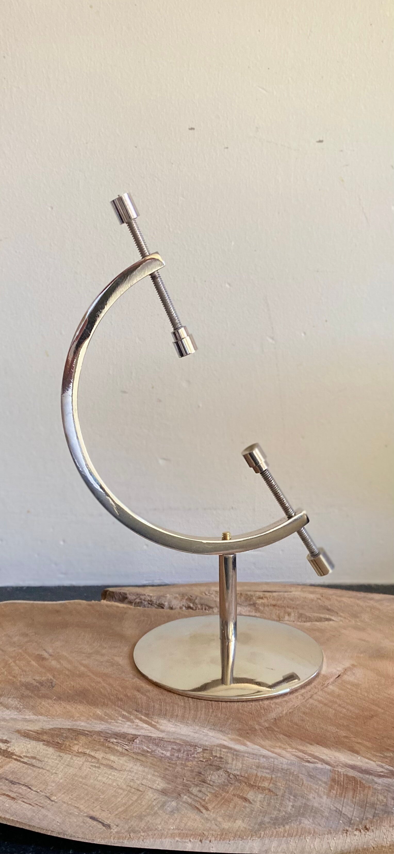 Zilverkleurige globe standaard voor edelstenen.