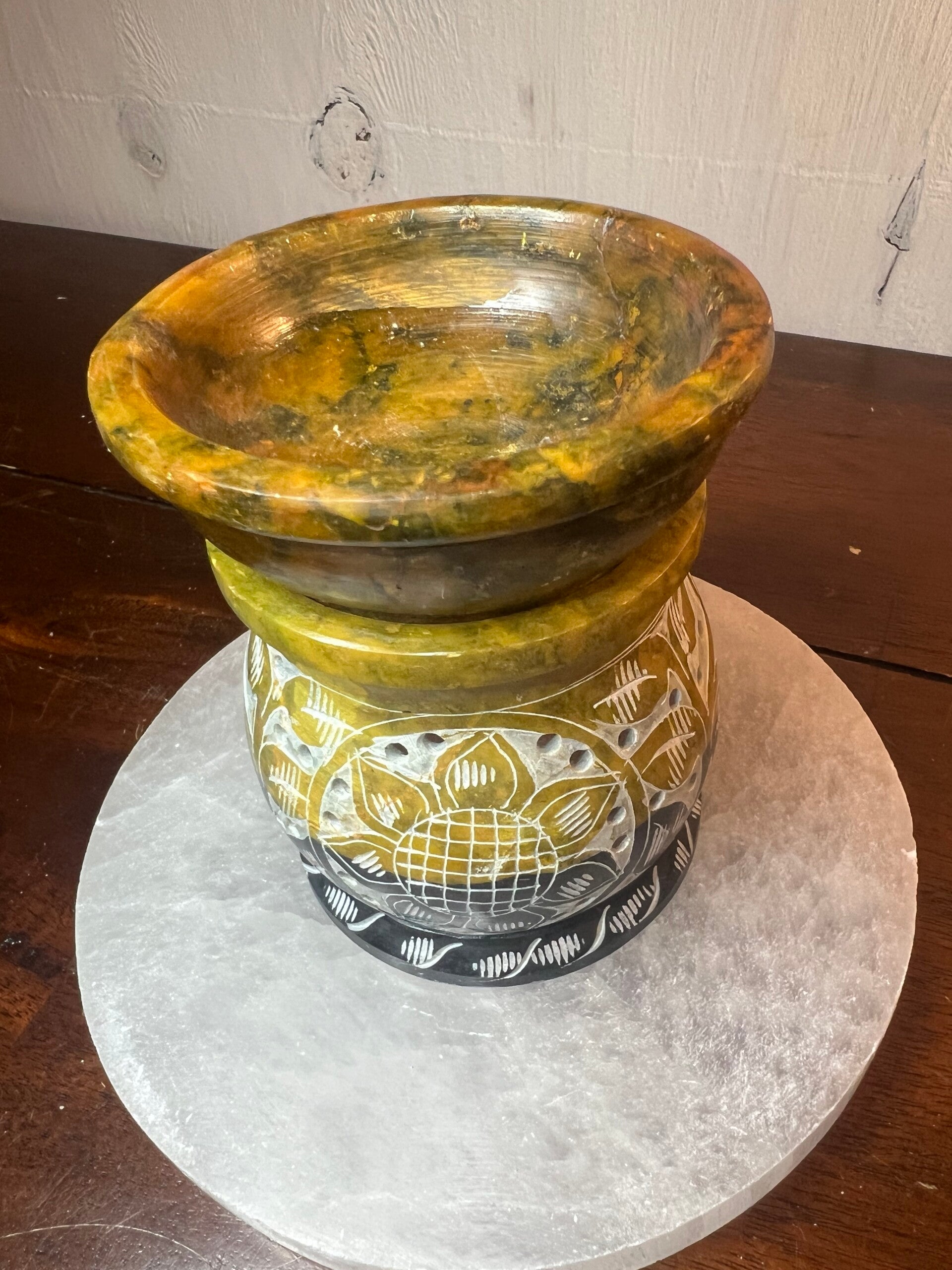 Zeep-/speksteen oliebrander, 10 cm hoog, diameter 7,5 cm