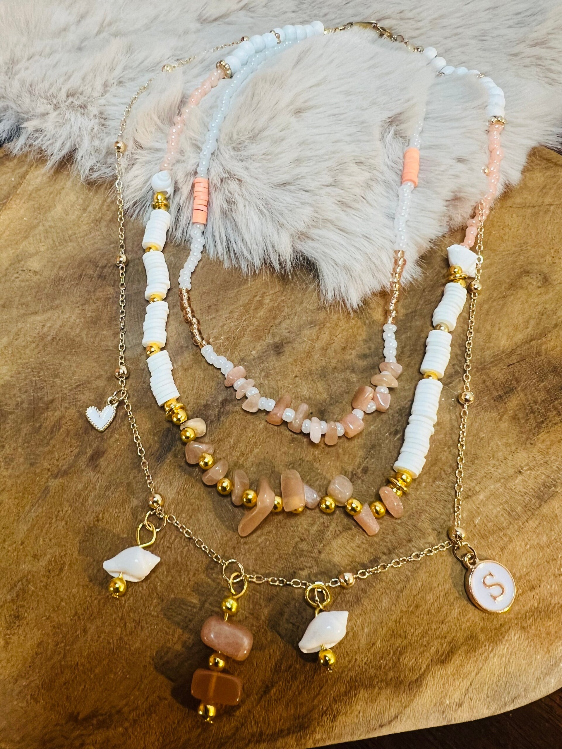 🧡 Drielaagse Boho Ketting – Zonnesteen (Handgemaakt)